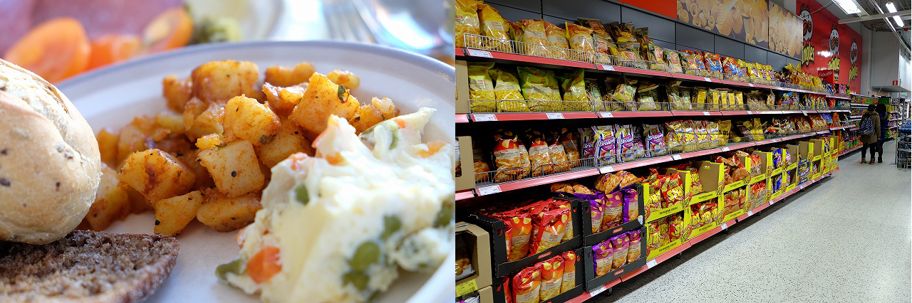 スーパーのポテトチップス売り場も壁一面! 本当にジャガイモ好きな国民なのですね~。